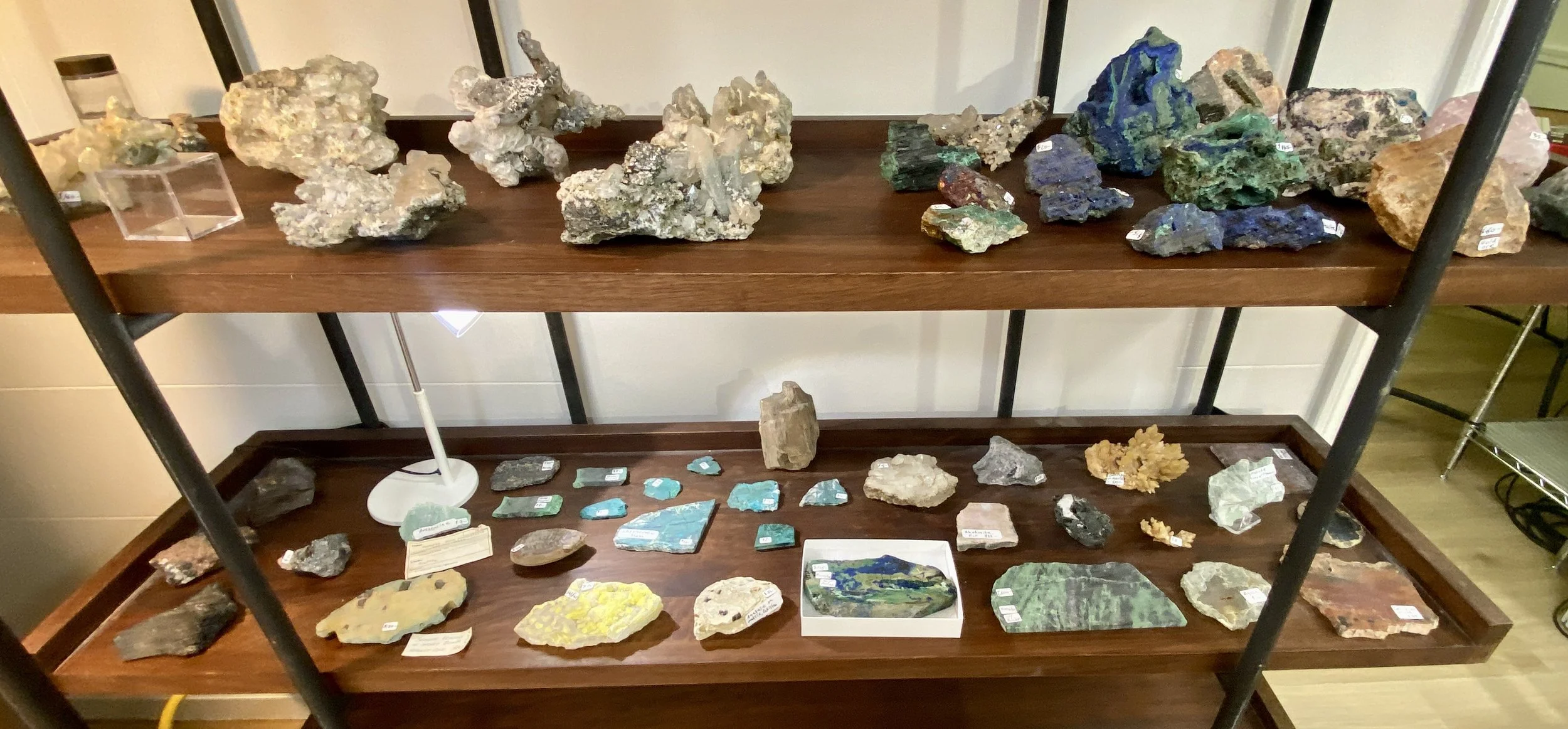 Malachite, Azurite, Malachite with Azurite, Chrysocolla, Zoisite, Ammonite, Bumble Bee Jasper & others.