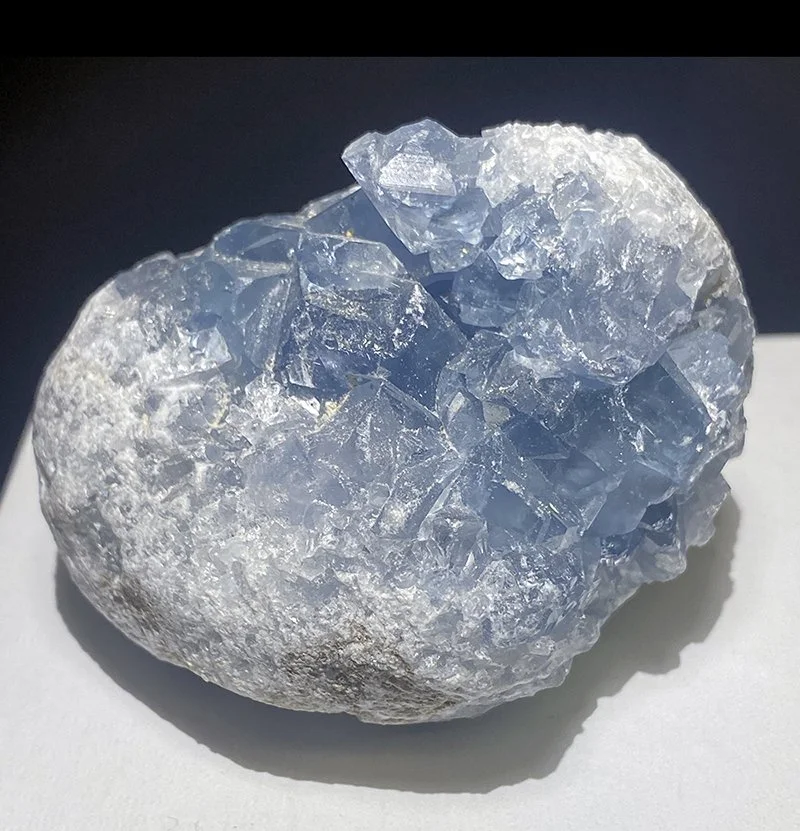 This beautiful small geode grows in caves around the coast of Madagascar. The natural blue color and alluring crystal formations are stunning!